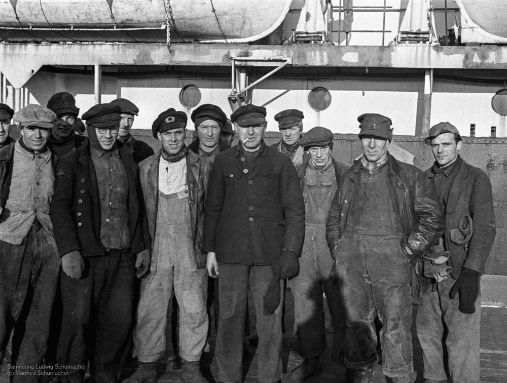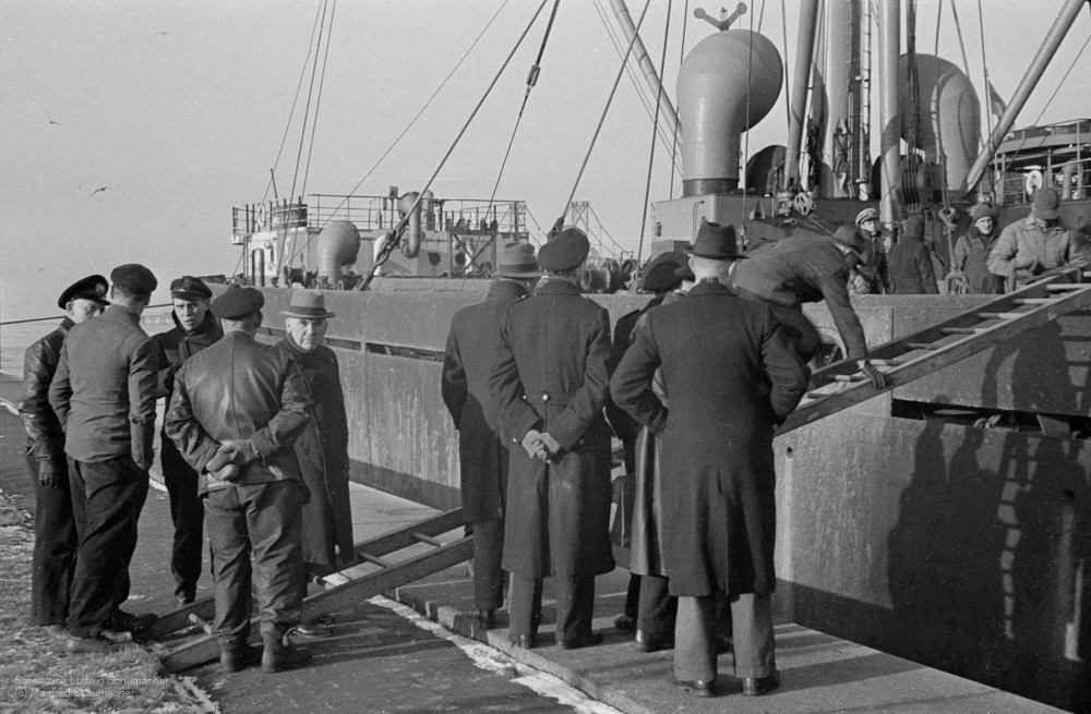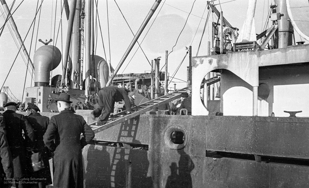 Gang entert Seeschiff in der Großen Seeschleuse